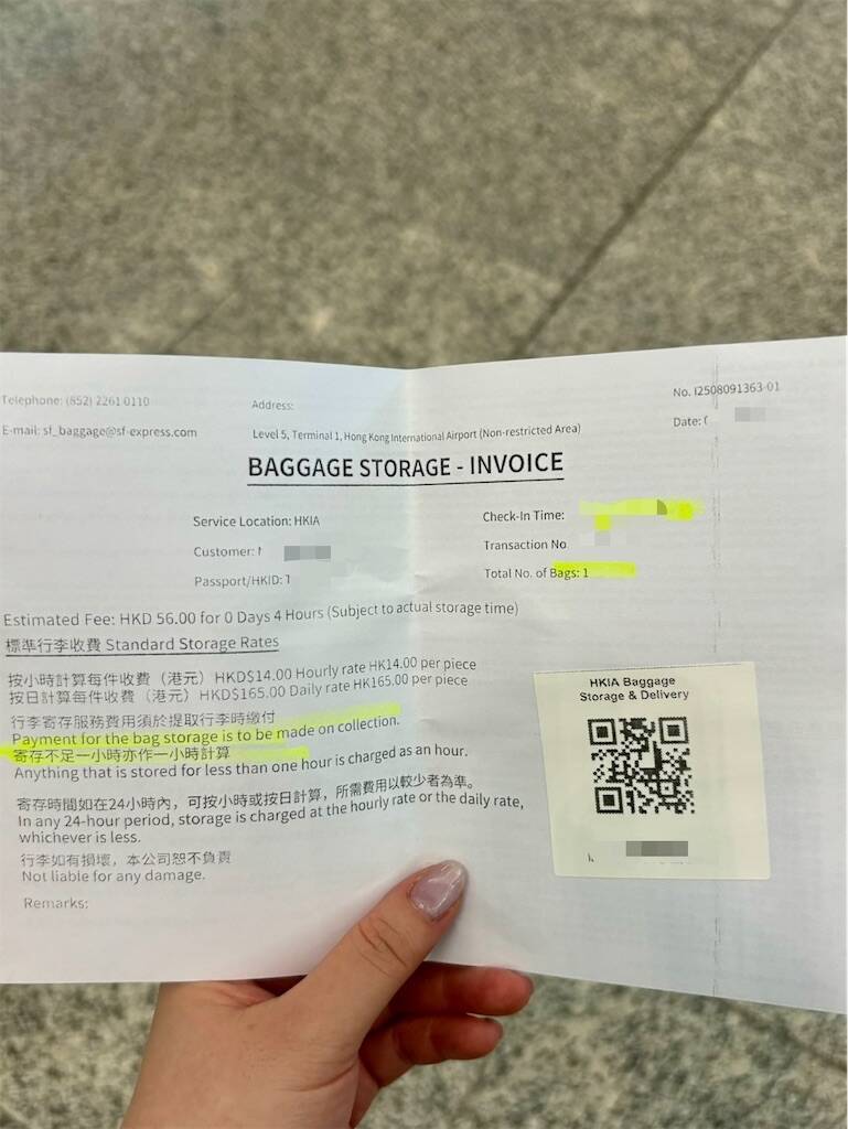 - 料金:1個あたり1時間14HKD、1日上限165HKD。11時間以上預けると1日料金が適用されるので、長時間利用でも安心です。
