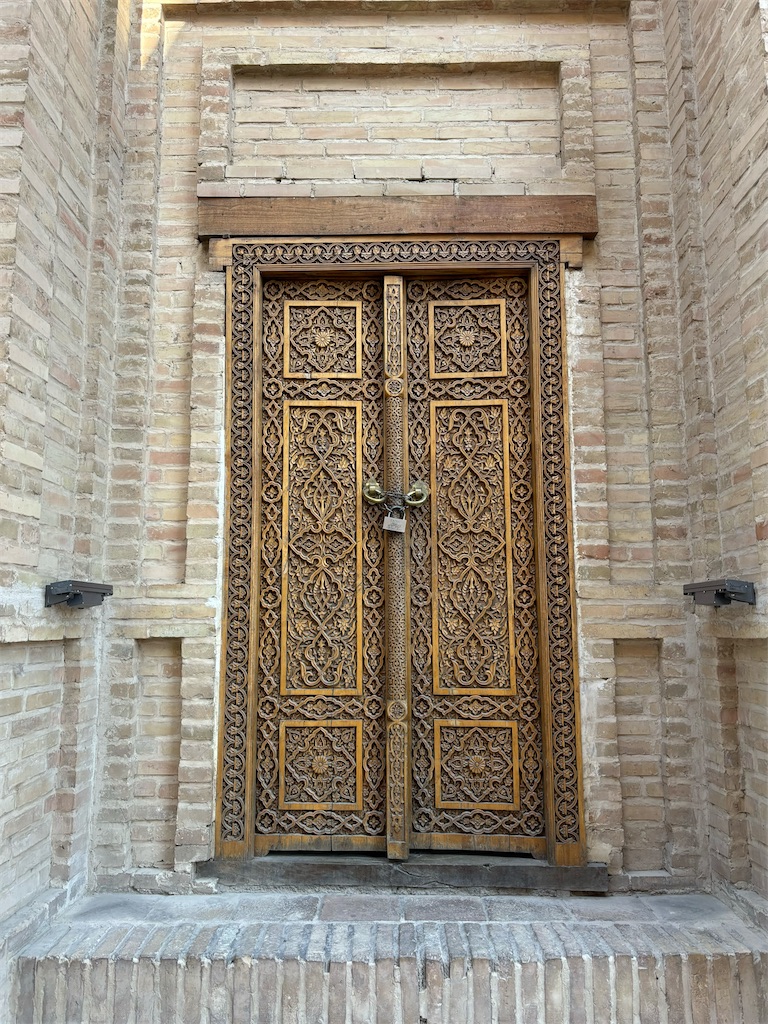 入場料を払って中に入ると、まず左側にこじんまりとした美しいモスクがあります。ここはティムールの乳母、ウジャナイのための廟だそうで、今は女性のためのモスクになっています。女性だけのためのモスクというのは非常に少ないのだそうです。